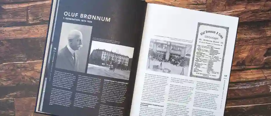 Få hele Oluf Brønnum & Co's historie i jubilæumsbogen 'Brønnum gennem 150 år - 1874-2024'.