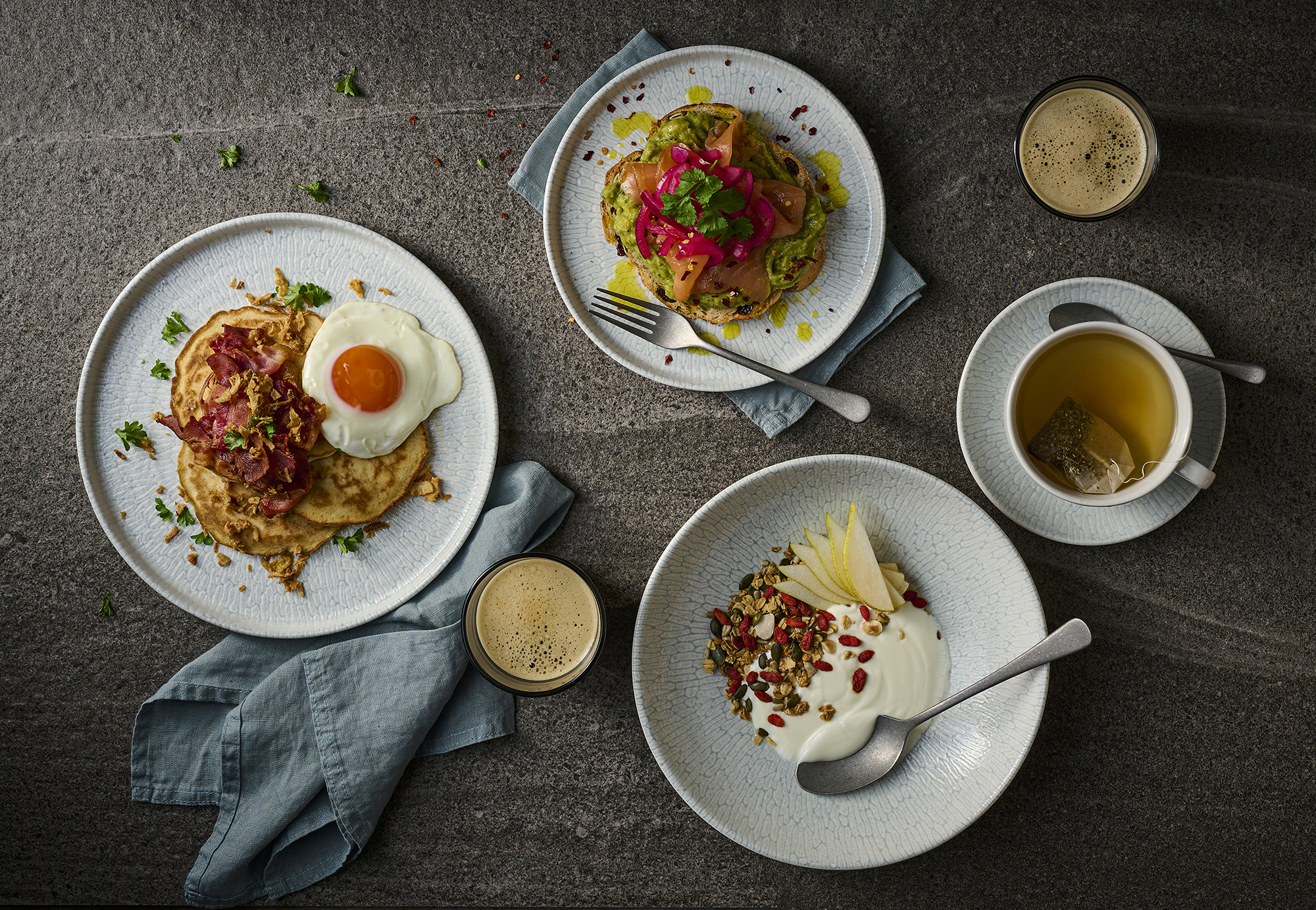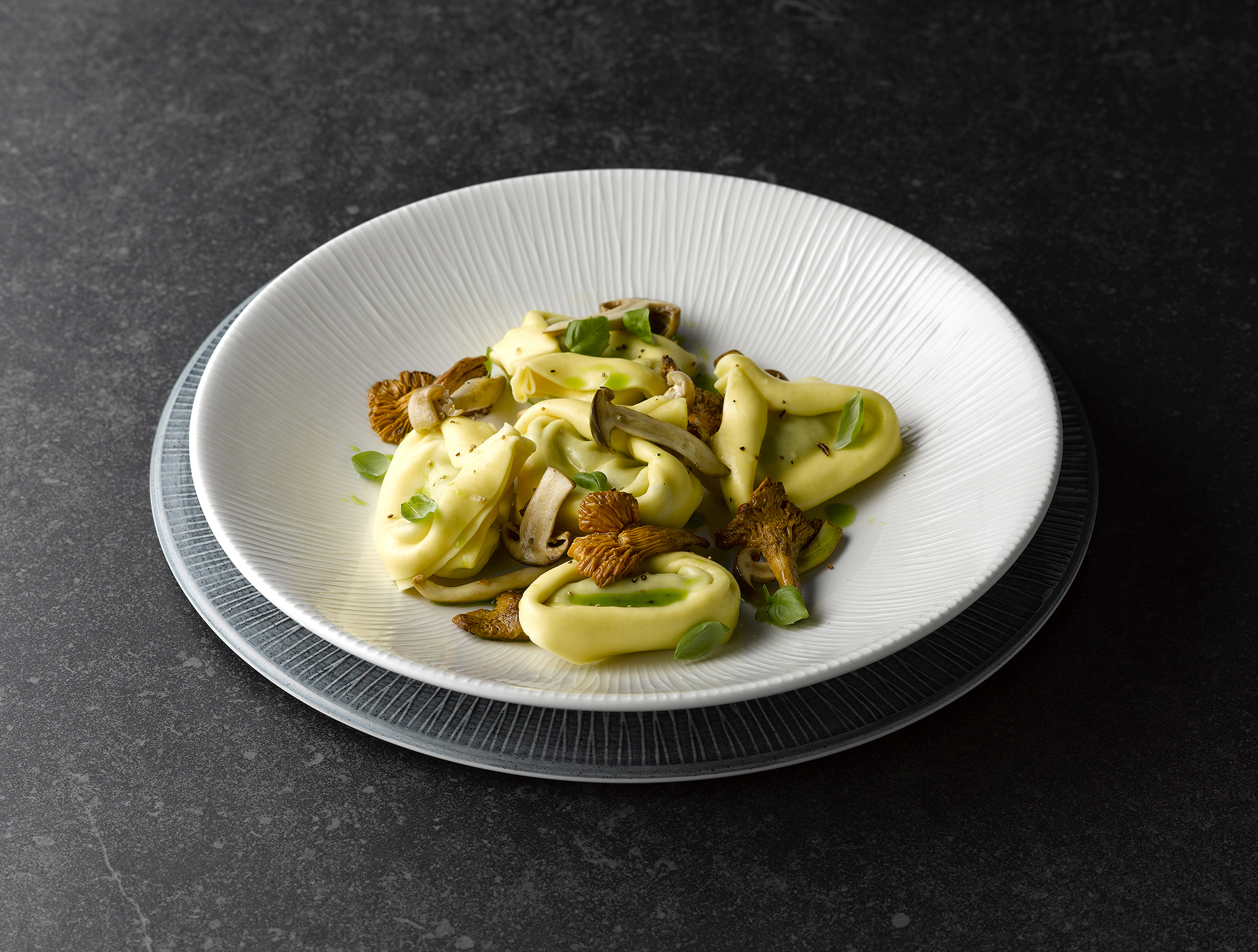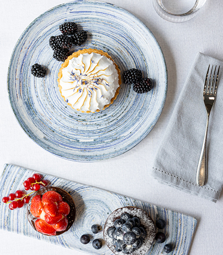 Her er lærredet lagt for kokkens kreativitet. Den særlige spinwash-glasur giver en let og diskret farveeffekt, der skaber en elegant base, hvor hver anretning kan folde sig ud.