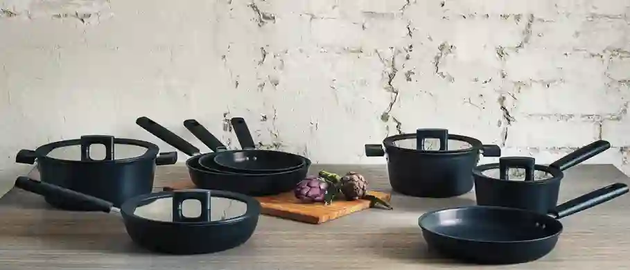 Den meget tykke bund fordeler varmen jævnt og effektivt. Energy Base i bunden er optimeret til 50% hurtigere opvarmning og bruger 30% mindre energi på glaskeramiske kogezoner, men passer stadig til alle typer af kogezoner - også induktion.