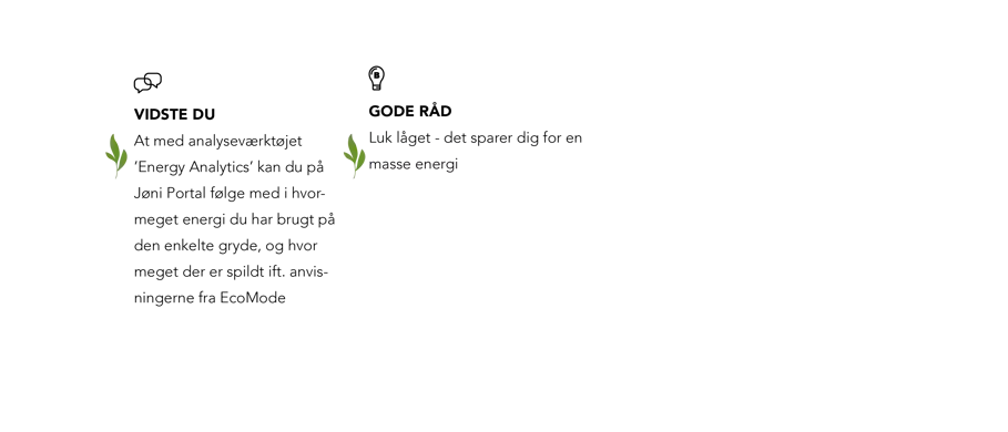 Med Jønis nye AutoChef 86 serie bliver der sat ekstra fokus på energiforbruget og styringens EcoAssistent hjælper brugeren med at holde låget på gryden lukket og undgå unødvendig høje temperaturer.