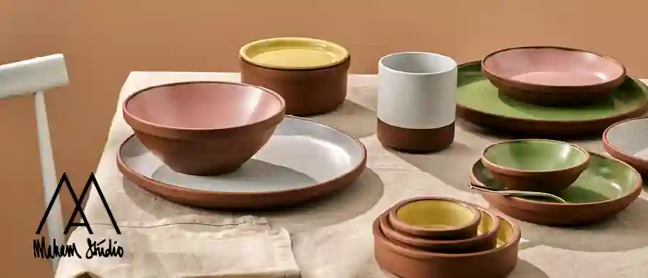 Spice-serien, der er designet og skabt i samarbejde mellem Steelite og den anmelderoste designer Maham Anjum, udforsker udtryk i form af den uglaserede yderside og den glaserede inderside - dette ved hjælp af en række glasureffekter - farvede og neutrale/halvmatte og plettede.