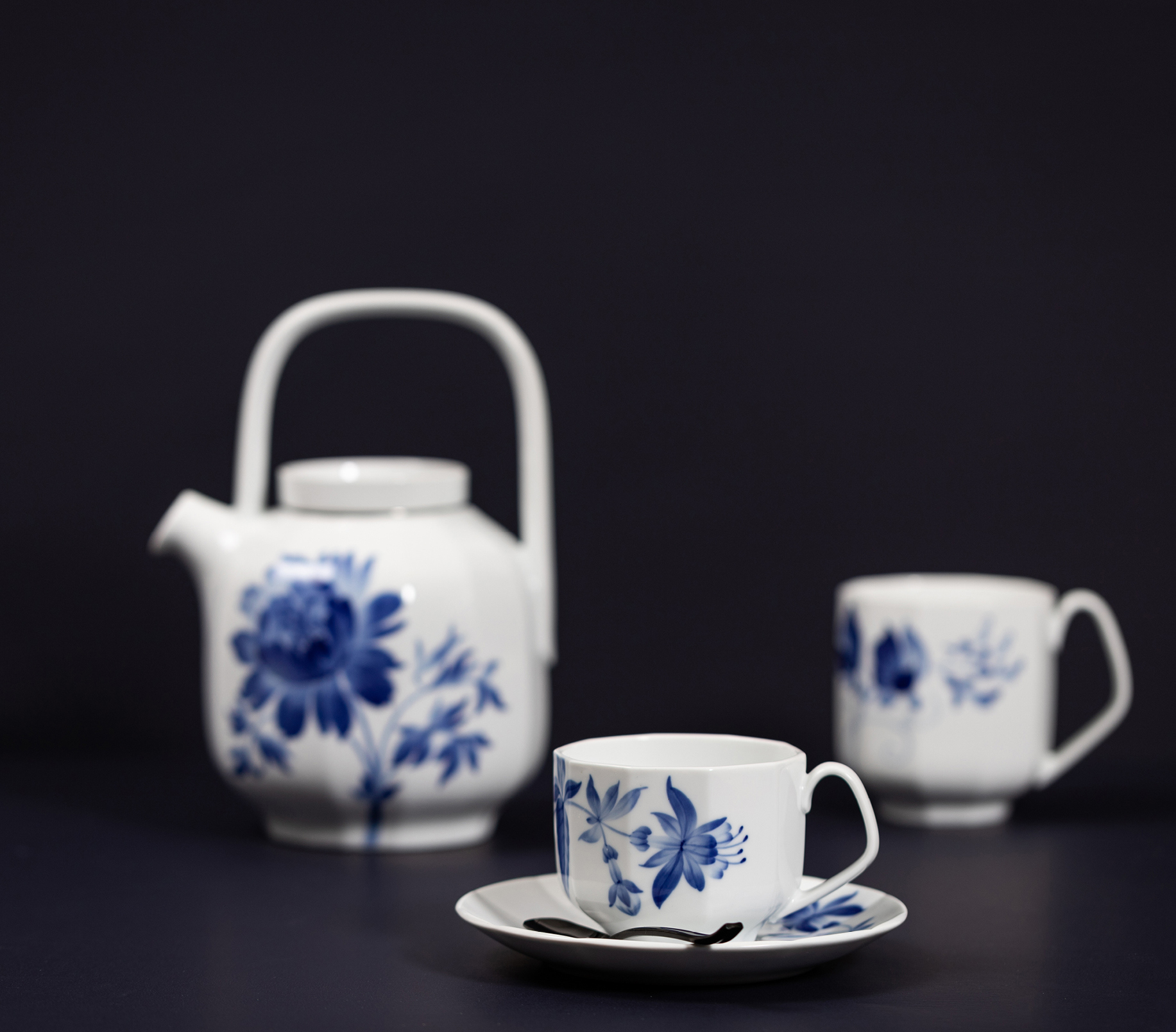 På Blå Elements får Royal Copenhagens velkendte blomstermotiver lov at vokse frit og hviske gamle fortællinger med en moderne ordlyd. Fortællingen findes i stellets detaljer med riflerne fra Musselmalet Riflet, kanten fra Musselmalet Halvblonde og den takkede yderkant fra det legendariske Flora Danica. Skabt i 2011