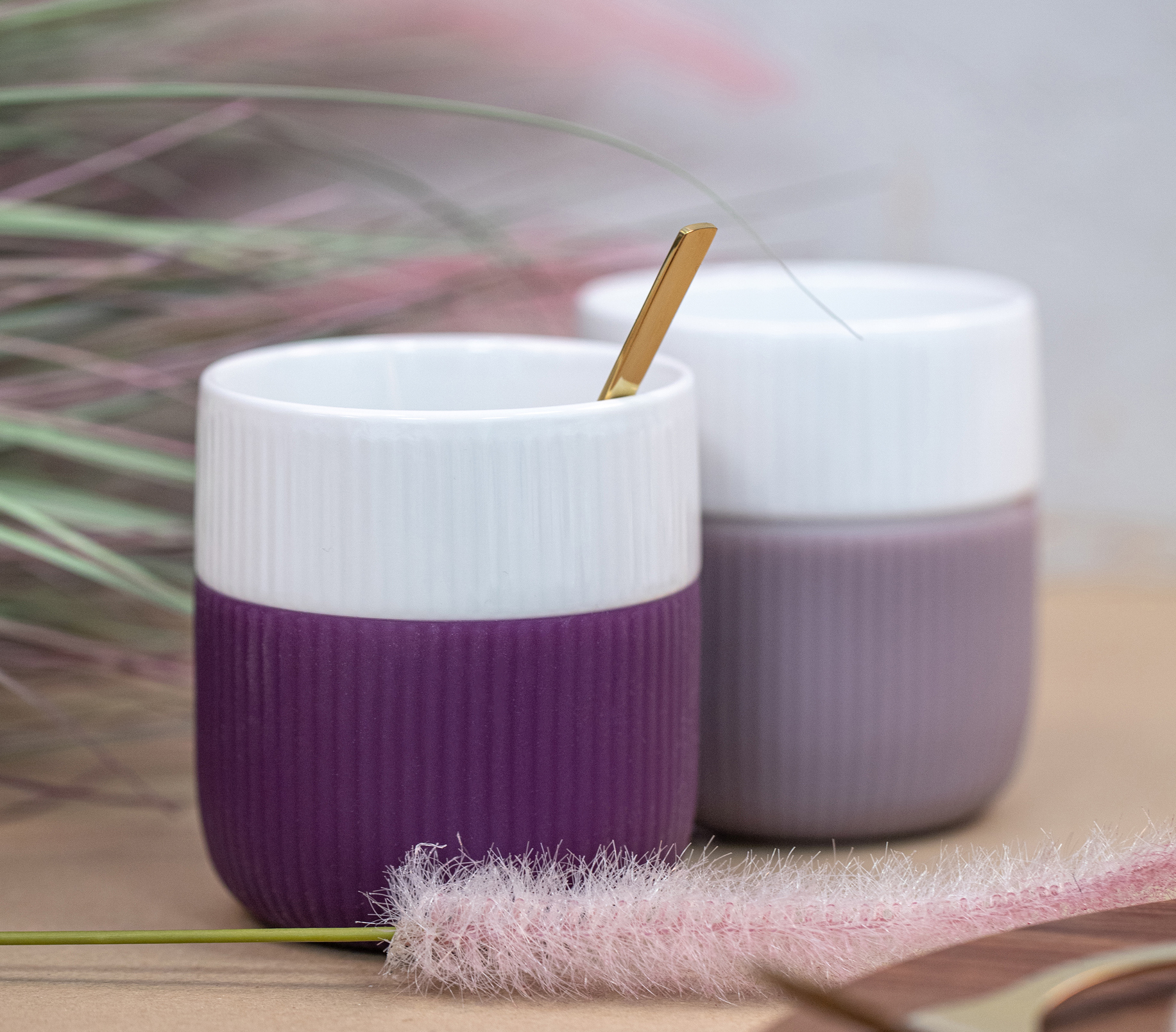 Rifler er et karakteristisk udtryk i Royal Copenhagens porcelæn. I Riflet Contrast mødes den klassiske fortid og den moderne nutid i en regnbue af farver.