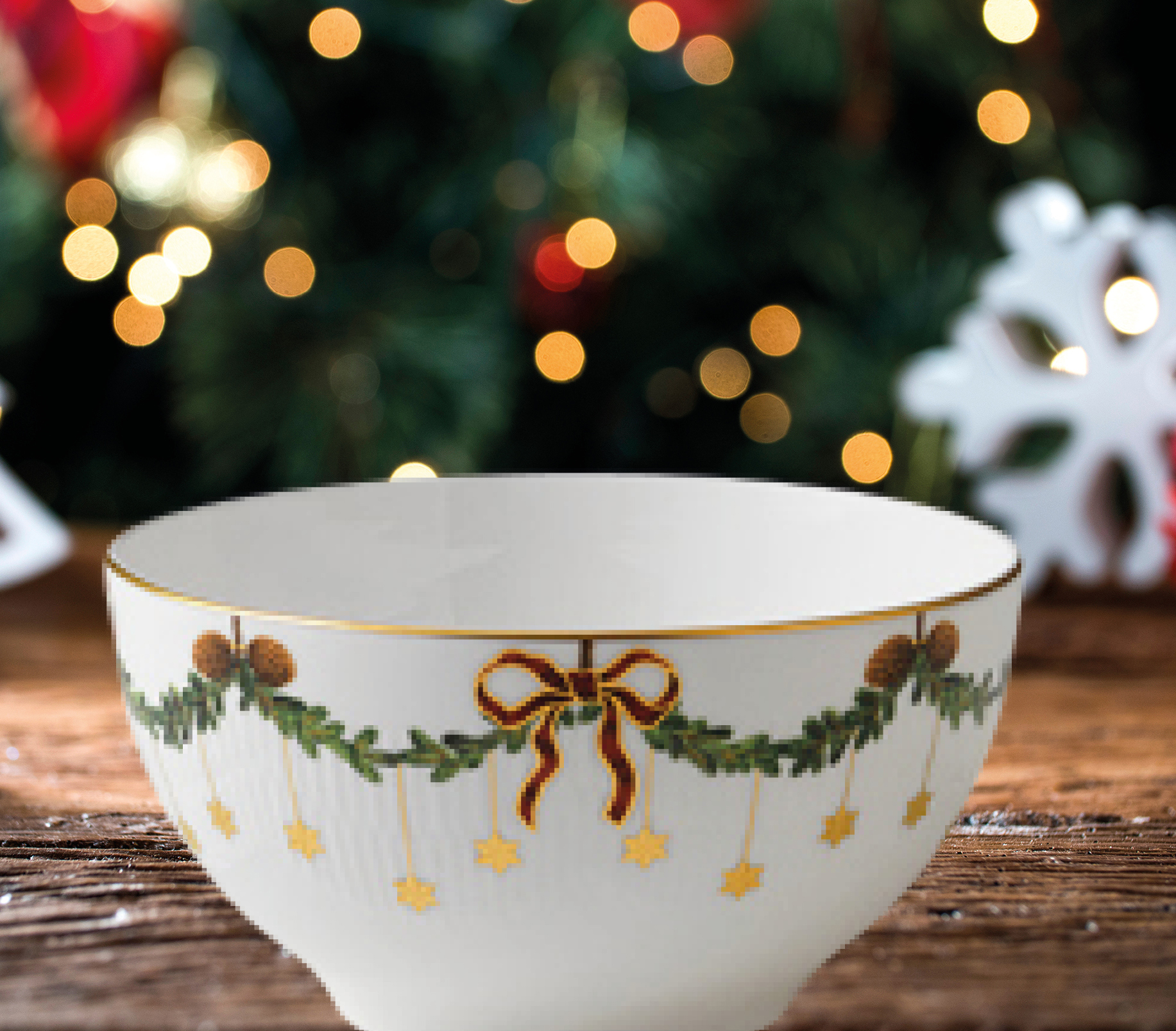 På hvert nyt stykke Stjerne Riflet Jul får granguirlanden et særligt drys af julens stjernestøv, hvormed hver steldel bliver en lille julefortælling i sig selv. Det smukke stel her er fra 2006.