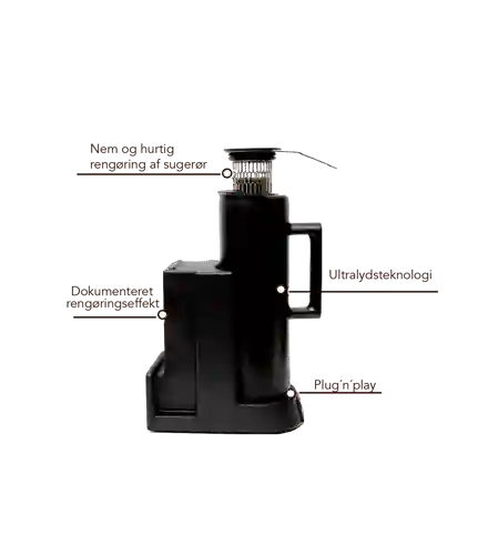 Sugerørsrenseren sættes i en almindelig stikkontakt, og kræver derfor ingen installation. Den bruger kun vand og den specialudviklede ultralydssæbe, den sættes i gang ved blot at trykke på en enkelt knap. Nemmere bliver det ikke.