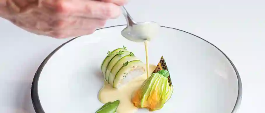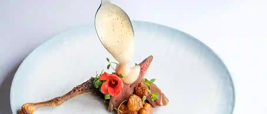 2: En signatursauce, der udtrykker kokkens personlige stil og faglige stolthed. Saucen er stjernen – og skal ledsages af valgfrit tilbehør, der løfter smagen.