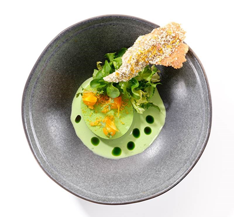 Feldsalat Pannacotta m ramsløg og Belperknolle