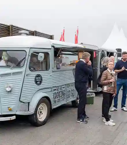 Udenfor holder Gastrotrucken klar med lækker mad til dagens besøgende - så der bliver også noget godt til ganen undervejs.