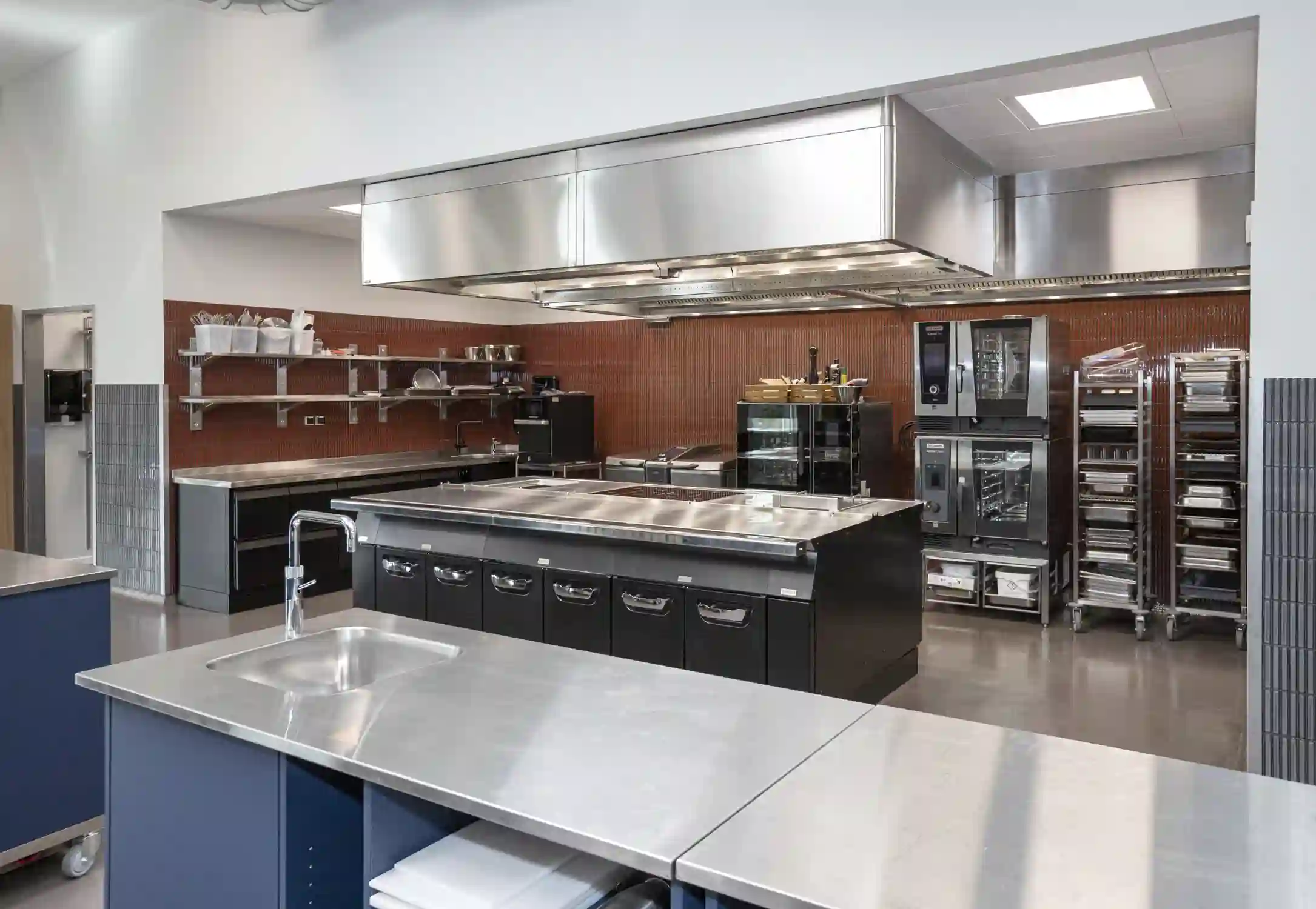 Køkkenerne er fuldt professionelt udstyret og kan anvendes til opskriftudvikling, private dining, vinsmagninger, kurser, events og møder. Alt i service og udstyr er inkluderet og kan tilpasses efter behov. Lokalerne egner sig desuden til photoshoots, foodstyling og mindre tv-produktioner.