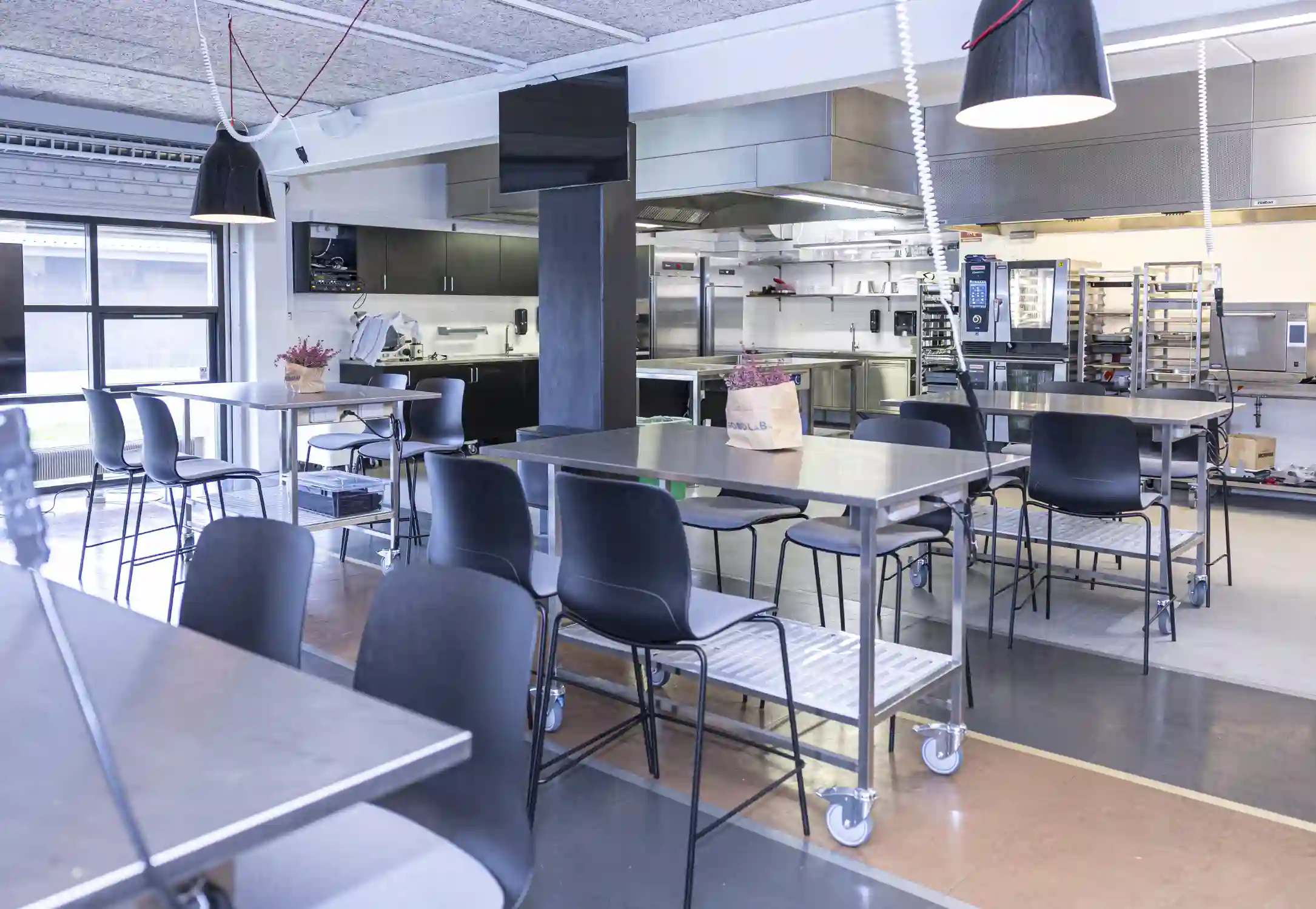 Køkkenerne er professionelt fuldt udstyret og kan anvendes til opskriftudvikling, private dining, vinsmagninger, kurser, events og møder. Alt i service og udstyr er inkluderet og kan tilpasses efter behov. Lokalerne egner sig desuden til photoshoots, foodstyling og mindre tv-produktioner.