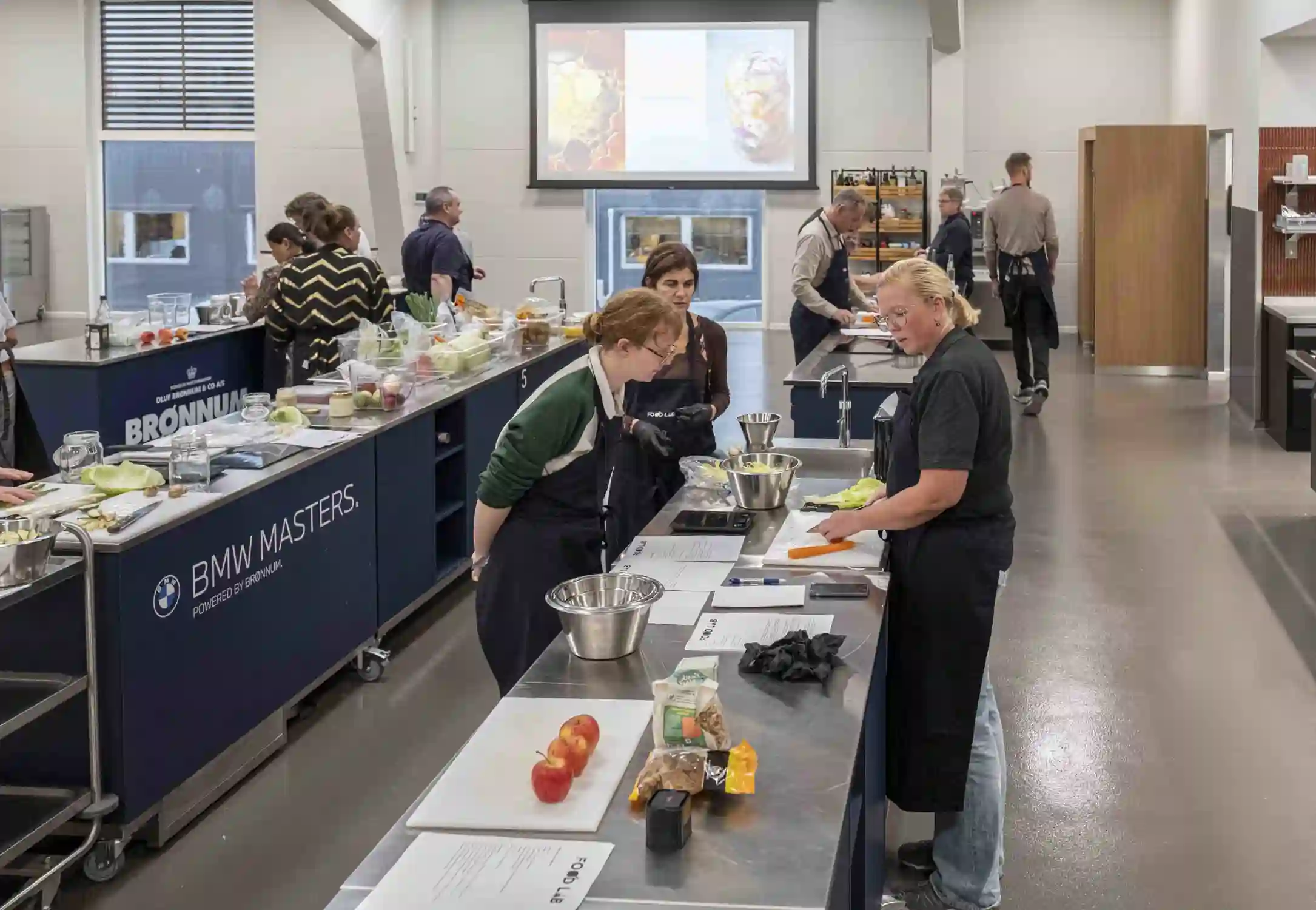 Det er også her, vores gastronomiske konsulenter udvikler menuer, opskrifter og materiale til kunderne – og hvor vi løbende afholder gratis kurser med afsæt i tidens trends og tendenser.