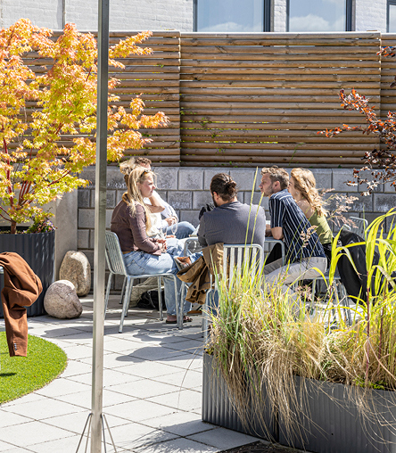 For at sikre en komplet oplevelse er der adgang til moderne AV-udstyr til præsentationer og møder. Pauserne kan (i Food Lab Herlev) nydes på vores terrasse med pejs, inspireret af den danske strand, hvor omgivelserne skaber ro og plads til nye tanker.