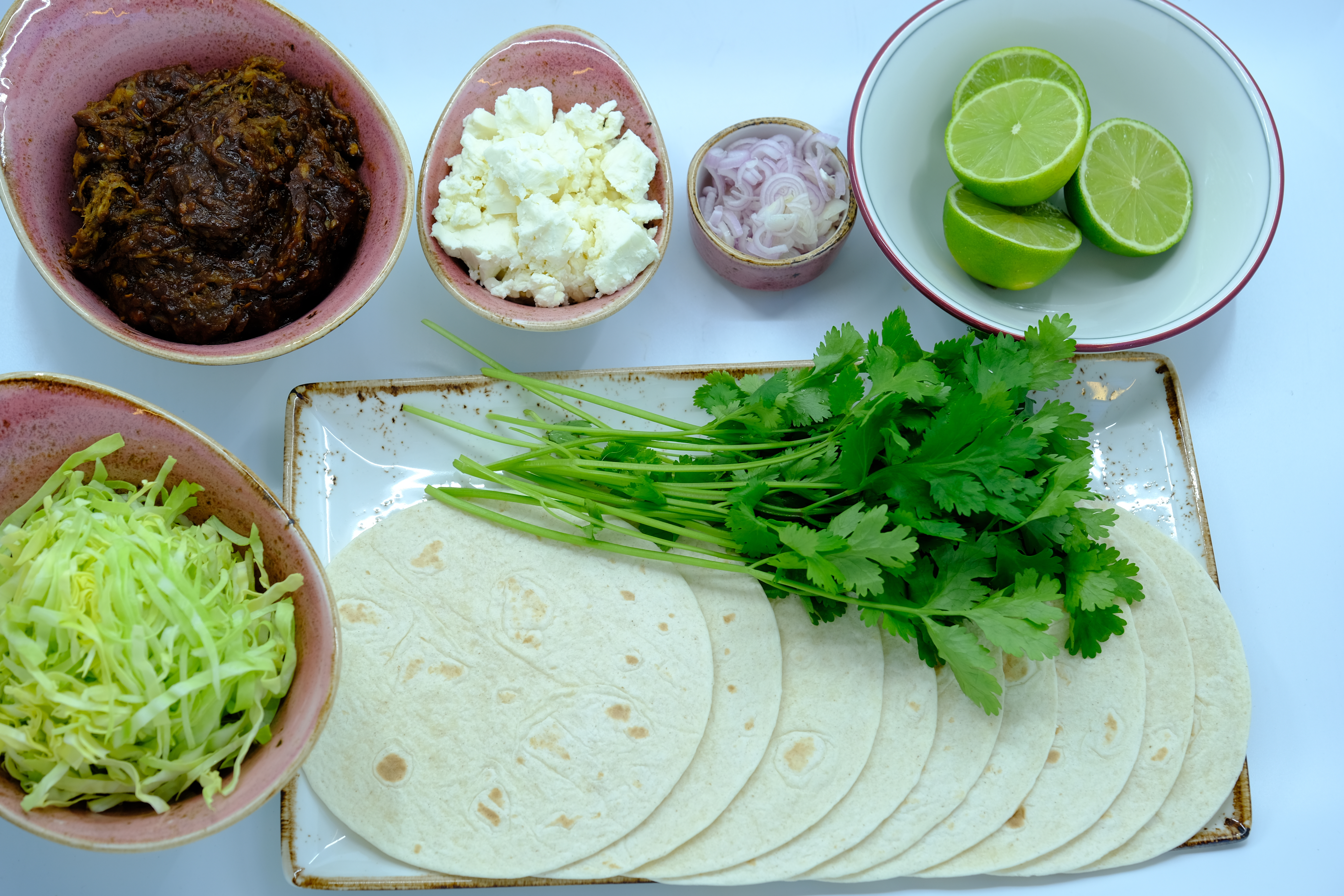 Server resten af ingredienserne, så gæsten selv kan lave deres taco med de forskellige toppings.
