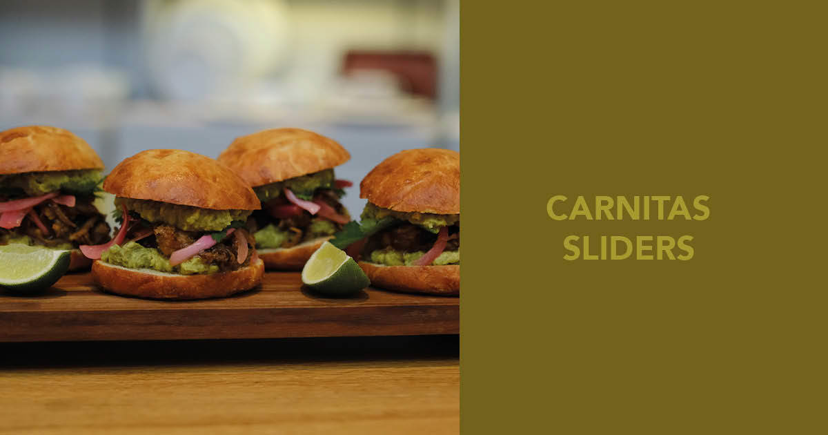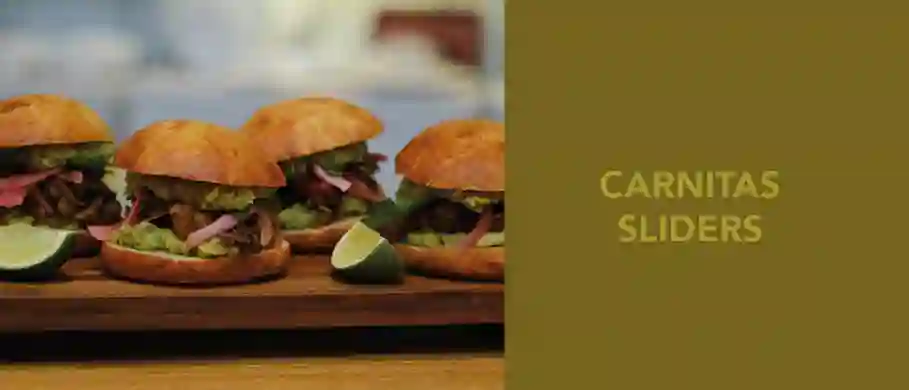 Halver bollerne og saml nu slidersene ved at smøre en god portion avokado pure på top og bund, lig en god portion Carnitas ovenpå og top med syltet rødløg og frisk koriander.