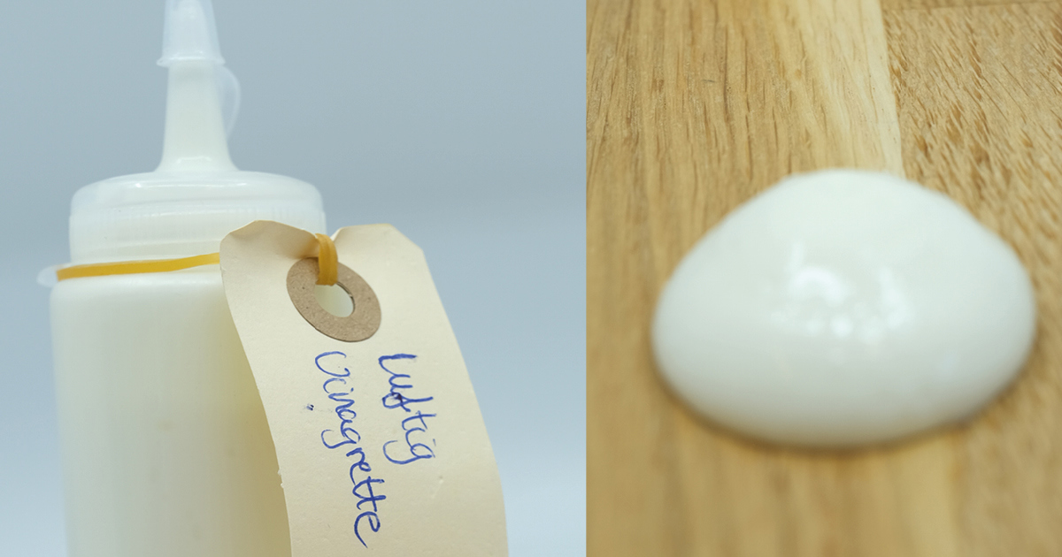Den luftige vinaigrette kan bruges til alt hvor du normalt ville bruge en mayonnaise, men her får du et lettere og luftigere produkt.