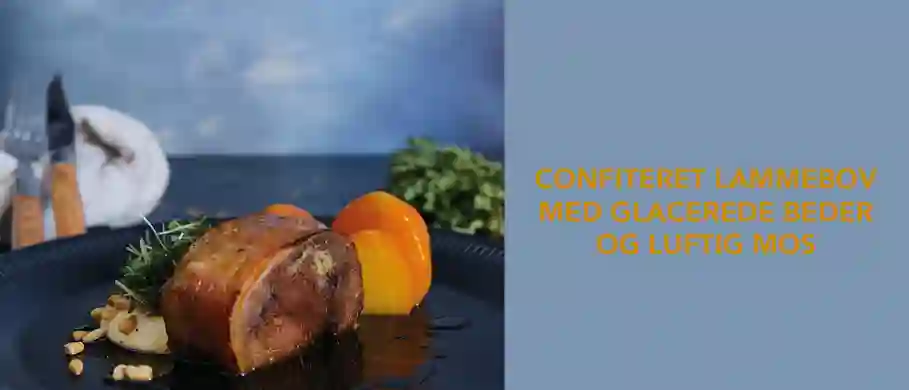 Dæk nu boven med andefedt (eller neutral olie hvis andefedt ikke kan skaffes) og confiter lammet ved 130 grader til mør. Lad den køle helt af i fedtet.