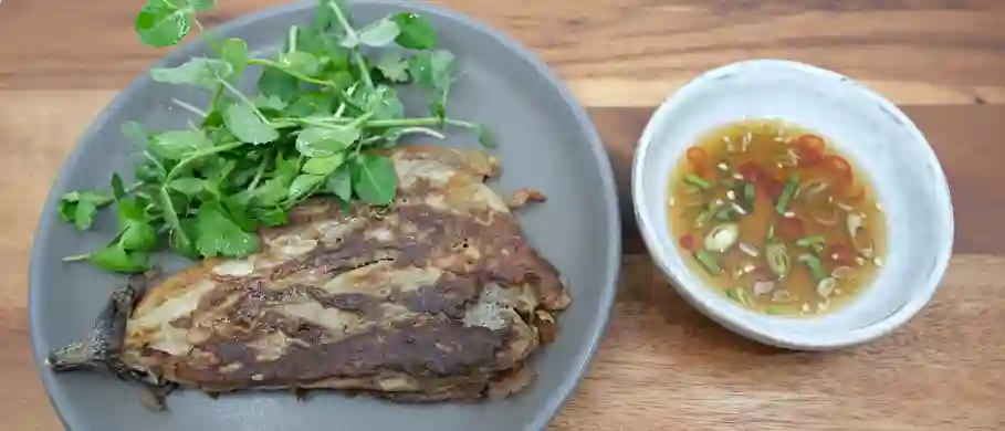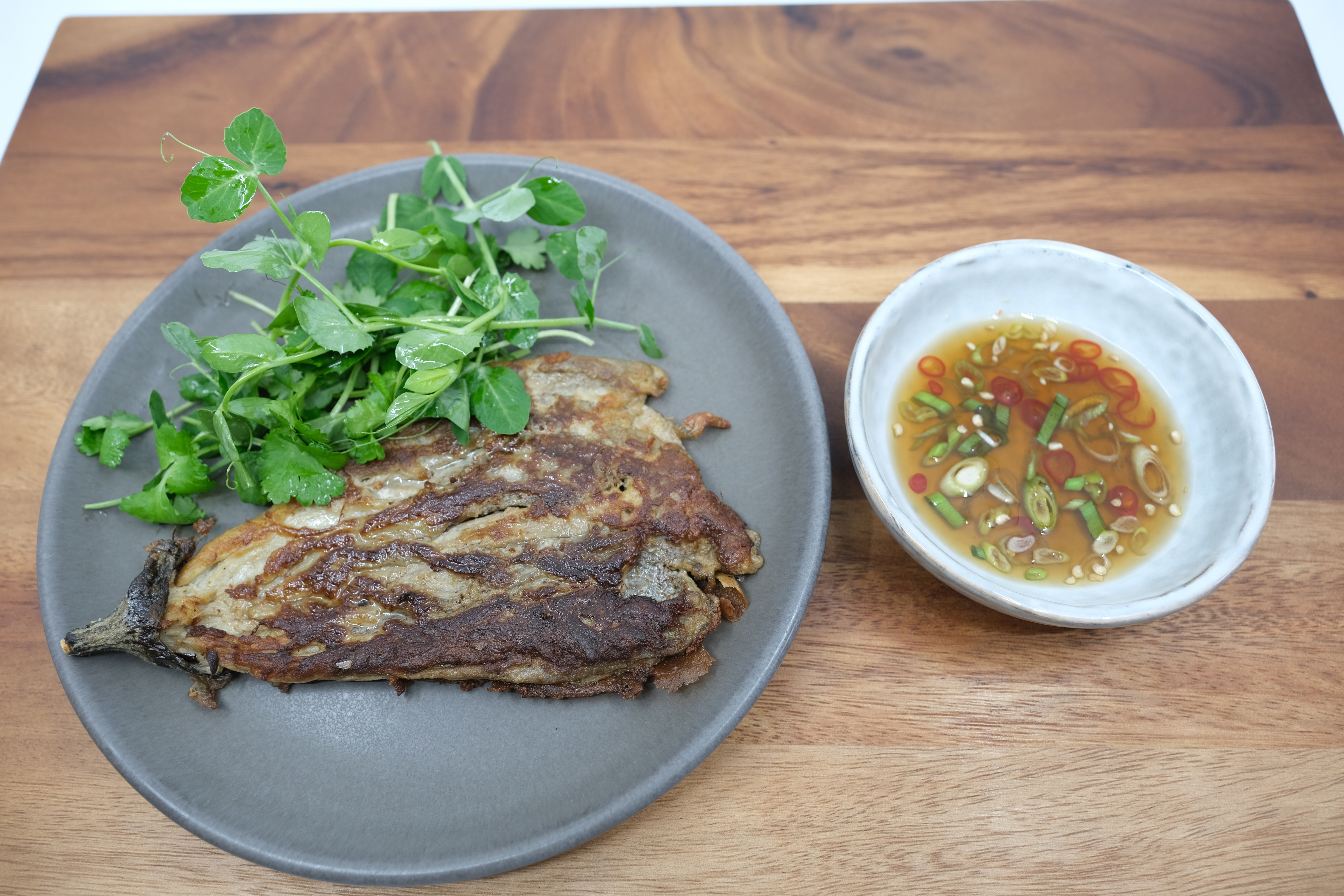 "Det grønne hjørne Vol 2" Tortang Talong med urter og asiatisk sauce
