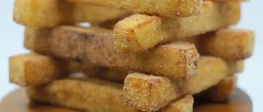Skær den nu i i bjælker eller skiver alt efter hvad du synes, vend dem i semulje og friter ved ca. 170 grader til de er gyldne og sprøde.