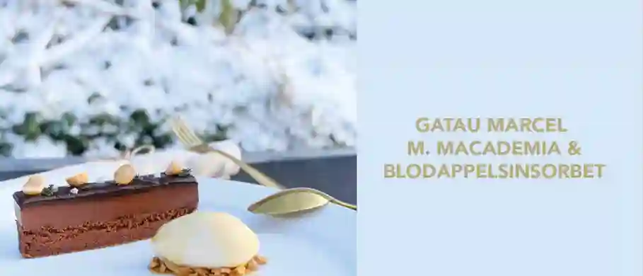 Gatau Marcel med Macademia og Blodappelsinsorbet