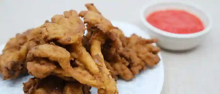 Dryp svampene af på en rist og krydder med fint salt og server straks med din favorit chilisauce.
