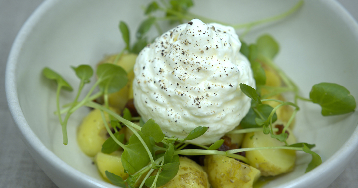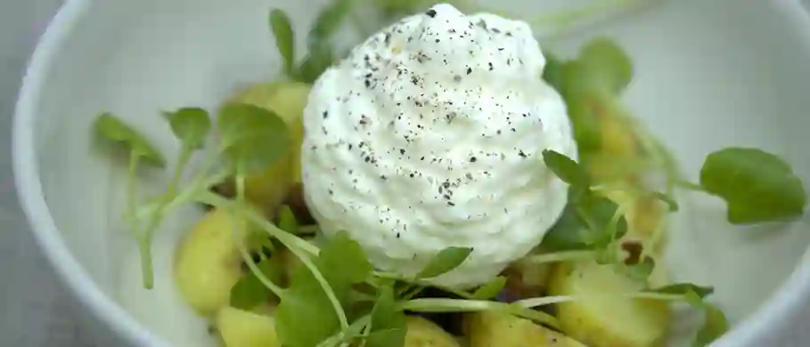 Kog kartoflerne i saltet vand næsten møre men med en smule bid. Køl dem straks af.