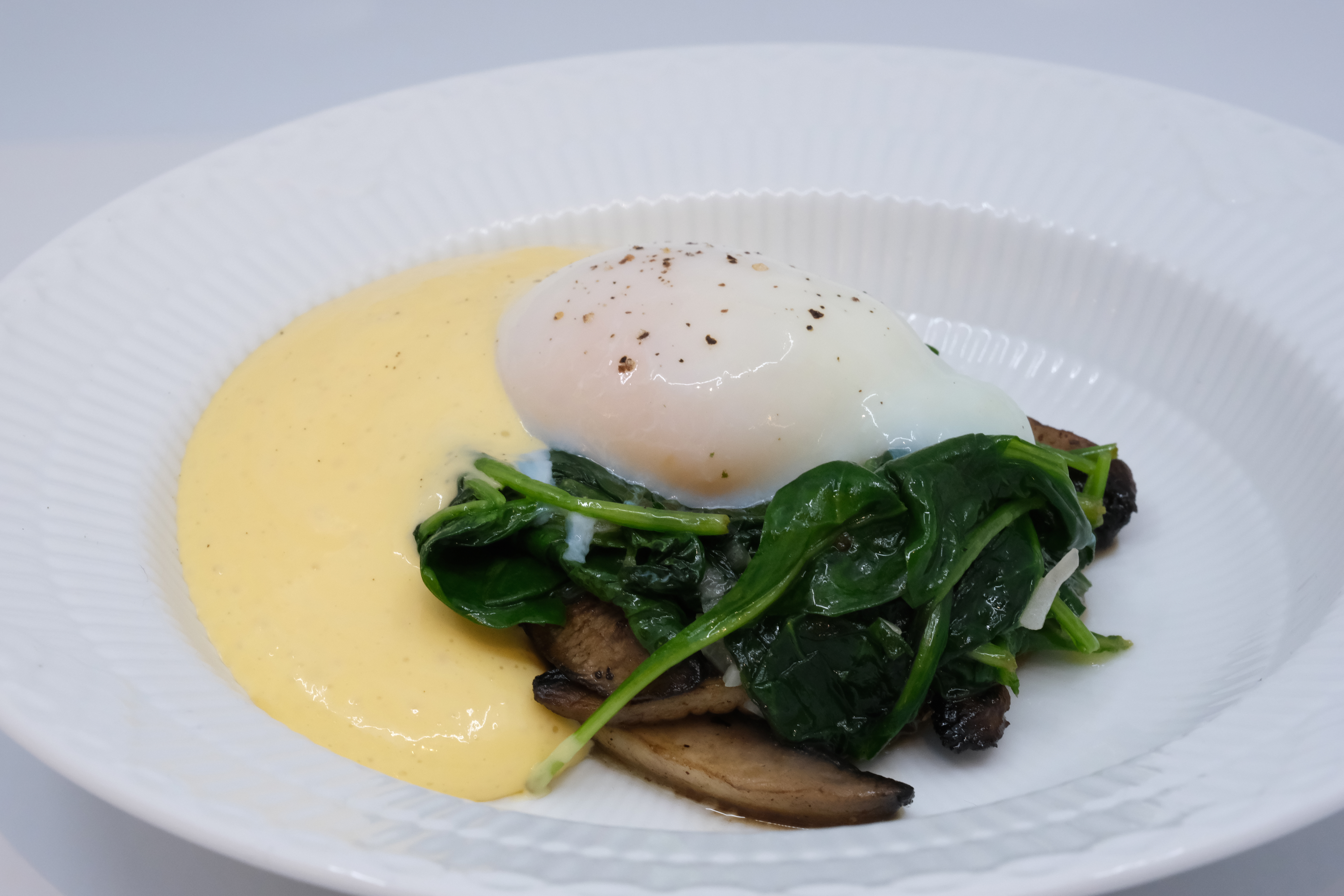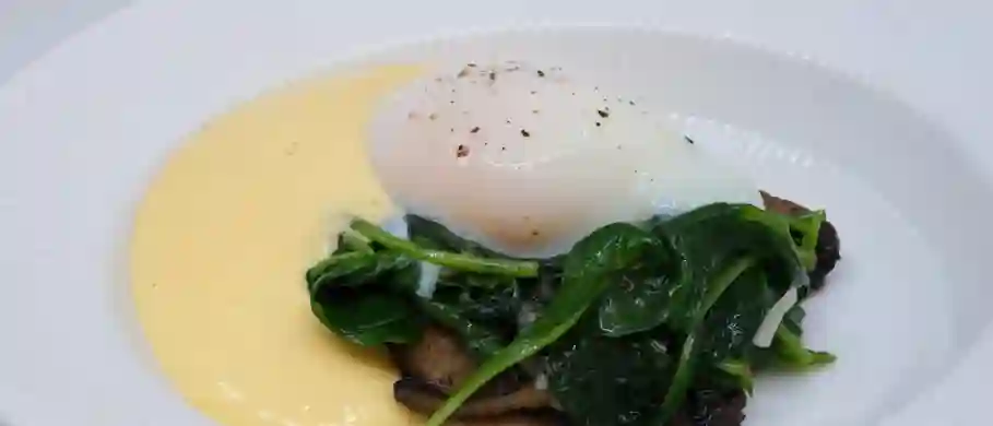 Pocheret æg med spinat og Mimolette hollandaise