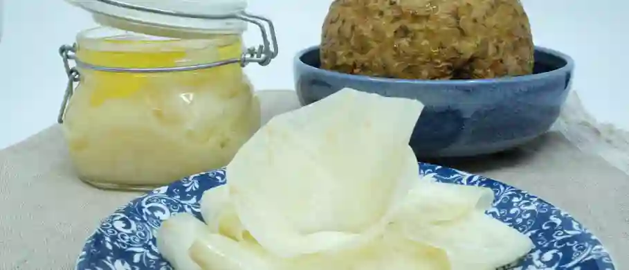 Skræl skrællerne af og skær dem i 1-1,5 mm på pålægsmaskinen.