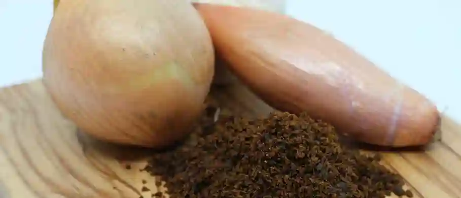 Snit løg og skalotteløg i både og hvidløg i skiver.