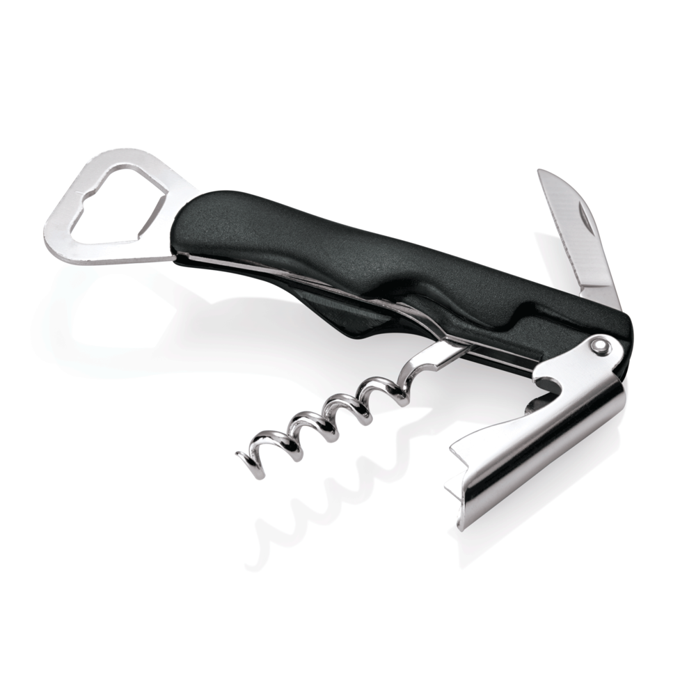 Tjener proptrækker med kapselåbner og lille foliekniv.