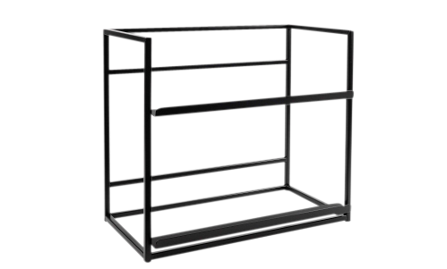 Gastro bord stativ reol, giver mulighed for at sætte sit eget præg til f.eks. buffeten. Reolen er pulverlakeret i mat sort RAL 9005, glans 30. Rengøres med fugtig klud med vand og mild sæbe.