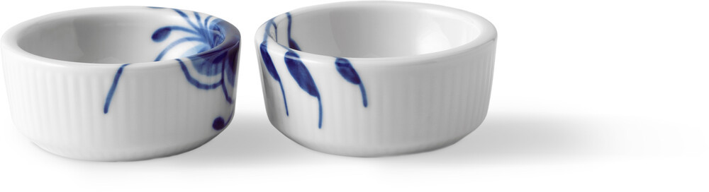 Royal Copenhagen Blå Mega Riflet Kar 3 cl, 2 stk. Blå Mega Riflet er en forfriskende nyfortolkning af det ikoniske Musselmalet stel fra 1775. På Blå Mega Riflet er det velkendte blomstermønster fra Musselmalet Riflet fortolket på nye og overraskende måder og på charmerende vis forstørret, hvilket giver hvert stykke porcelæn et unikt, håndmalet mønster. Siden Blå Mega Riflet blev designet i 2000 af Karen Kjældgård-Larsen for Royal Copenhagen, er stellet blevet solidt forankret i Royal Copenhagens arv og en ny klassiker inden for dansk design. Det moderne stel er smukt i sig selv og i kombination med andre Royal Copenhagen stel.