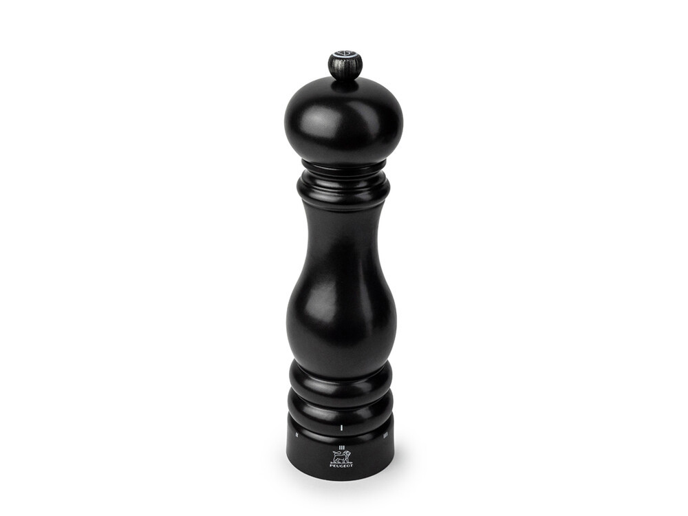 Peugeot Paris uS Saltkværn 22 cm Sort Satin Bøg. Den klassiske Paris kværn er Peugeots signaturmodel og kendt for sit ikoniske design. Kværnen har det patenterede u’Select-system med 6 forskellige faste indstillinger – fra helt fint til groft. Drej blot den nederste del af kværnen og vælg den ønskede finhedsgrad. Drej altid med uret, da det løsner skruen at dreje frem og tilbage. Brug kun tørt salt, havsalt og kværnsalt, max ø4 mm. i saltkværnen.
