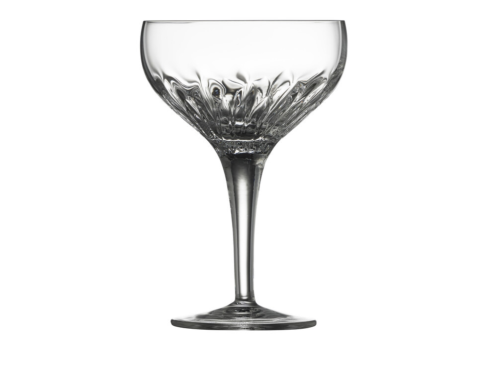 Luigi Bormioli Mixology cocktailglas 22,5 cl. Server drinks med stil og elegance med de smukke glas fra Luigi Bormioli's Mixology serien. Glassene er udviklet i samarbejde med bartender og cocktailspecialist Yuri Gelmini, og designet til drinks og cocktails. Mixologi glassenes smukke mønstre og facetter giver et utroligt smukt og unik udtryk når lyset spejles i glasset. Luigi Bormioli er med rent og elegant design med til at skabe rammen om en uforglemmelig smagsoplevelse for gæsterne. Luigi Bormiolis innovative krystalglas SON.hyx® har en imponerende styrke, ved kanten er SON.hyx® 37% stærkere end standard krystalglas. SON.hyx® unikke egenskaber sikre et helt klart og glansfuldt glas, selv efter 4.000 professionelle opvaskecyklusser har SON.hyx® stadig en smuk klar glans. Udover styrken fra SON.hyx® har Luigi Bormioli en patenteret proces, TITANIUM Reinforced® som styrker glassets stilk og øger dens modstandsdygtighed over for brud med 140%.