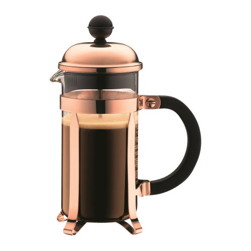 Denne kobberfarvede stempelkande fra Bodum i Chambord-serien med et indhold på 35 cl er fremstillet af borosilikatglas, en speciel type glas kendt for sin stærke holdbarhed og evne til at modstå pludselige temperaturændringer. I modsætning til almindeligt glas, er borosilikatglas mindre tilbøjeligt til at sprække ved skiftende temperaturer. Dette kombineret med den elegante kobberfinish sikrer, at din stempelkande ikke bare ser smukt ud, men også er designet til at holde. Med dens klassiske design og robuste materiale, er denne stempelkande både praktisk og stilfuld, perfekt til hverdagens kaffeoplevelser.