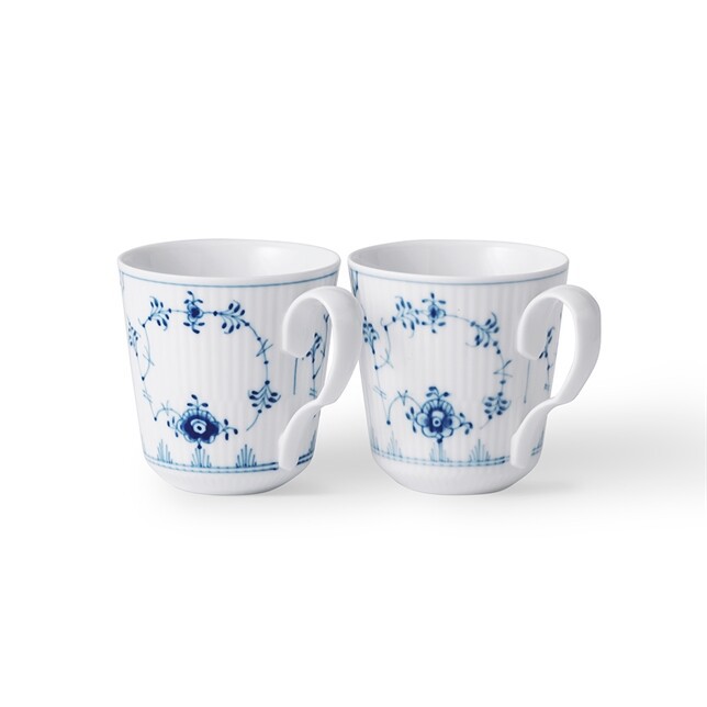 Royal Copenhagen Musselmalet Riflet Krus 28 cl. 2 stk. Musselmalet Riflet blev skabt i 1775 som Royal Copenhagens første stel. Hver del er et stykke kunsthåndværk, omhyggeligt bemalet i hånden en tradition der er givet videre fra blåmaler til blåmaler. Gennem mere end to århundreder er stellets tidløse elegance, klare blå farve og klassiske rifler blevet til dansk kulturarv og har stadfæstet Musselmalet Riflet som en sand tidløs klassiker. Musselmalet Riflet har dannet grundlag for en bred vifte af Royal Copenhagen stel og er dermed en rød tråd gennem Royal Copenhagens stolte historie. Det historiske stel er utrolig smukt i sig selv og i kombination med andre stel fra Royal Copenhagen.