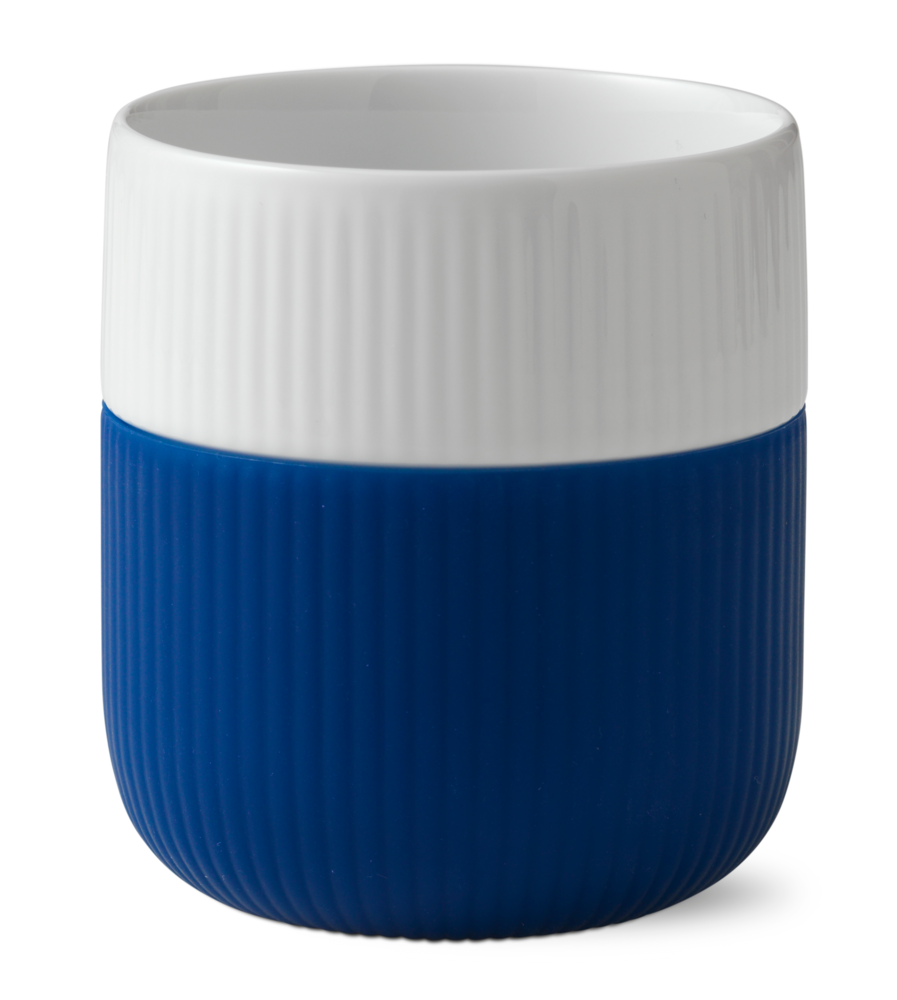 Royal Copenhagen Contrast Krus 35 cl. Mega blå. Contrast blev skabt i 2007 af H.C. Gjedde for Royal Copenhagen. Designet er elegant og nutidigt og skabt med stor respekt for Royal Copenhagens historie og designtraditioner. I Riflet Contrast mødes den klassiske fortid og den moderne nutid i en livligt, sprudlende farvespil. Det klassiske rifler gør at det moderne krus let kan kombineres med andre stel for Royal Copenhagen.