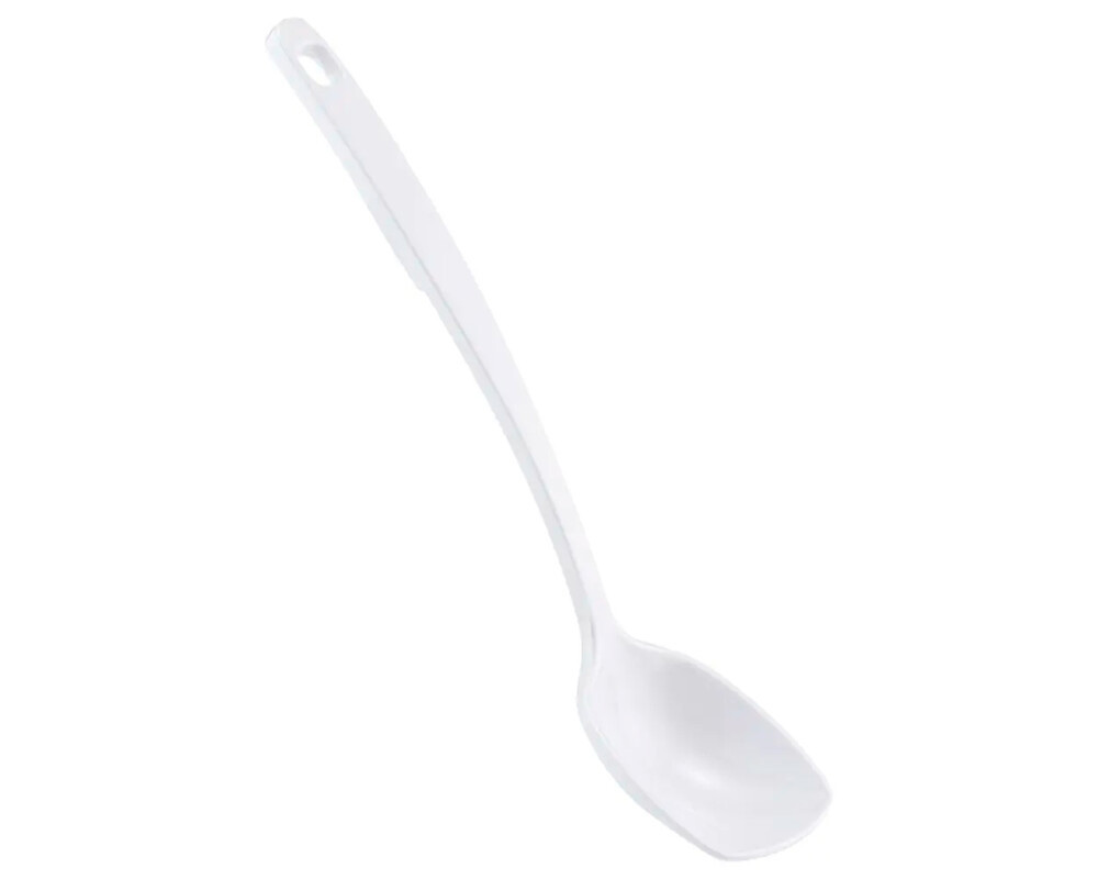 Grydeske i hvidt melamin med en længde på 22 cm. Skeen kan bruges til både servering og tilberedning. Melamin er en let og formstabil plast med en høj brudsikkerhed. Grydeskeer i melamin kan bruges i gryder og pander med non-stick belægning