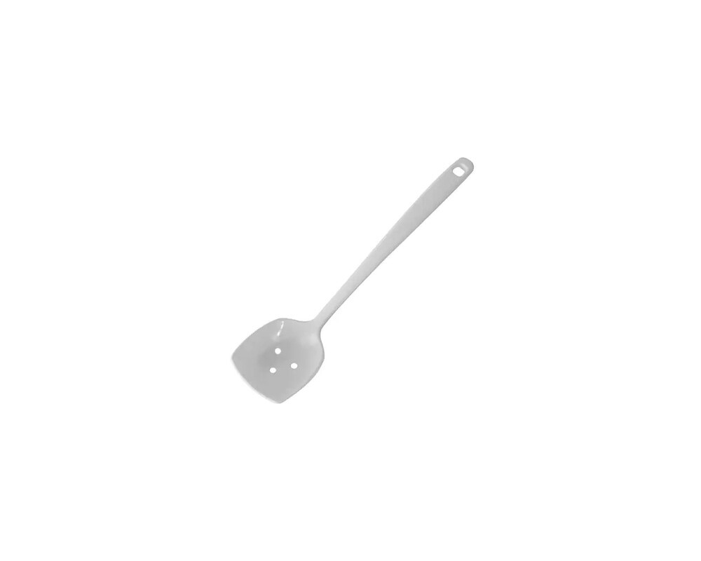 Grydeske i hvidt melamin med en længde på 25 cm. Skeen kan bruges til både servering og tilberedning. Melamin er en let og formstabil plast med en høj brudsikkerhed. Grydeskeer i melamin kan bruges i gryder og pander med non-stick belægning