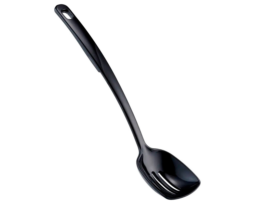 Grydeske i sort melamin med en længde på 31 cm. Skeen kan bruges til både servering og tilberedning. Melamin er en let og formstabil plast med en høj brudsikkerhed. Grydeskeer i melamin kan bruges i gryder og pander med non-stick belægning