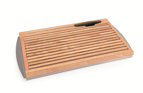 Brød skærebræt 48 x 25,5 cm. Skærebrættet kommer med krummebakke i rustfrit stål og plads til brødkniv, brødkniv inkluderet.