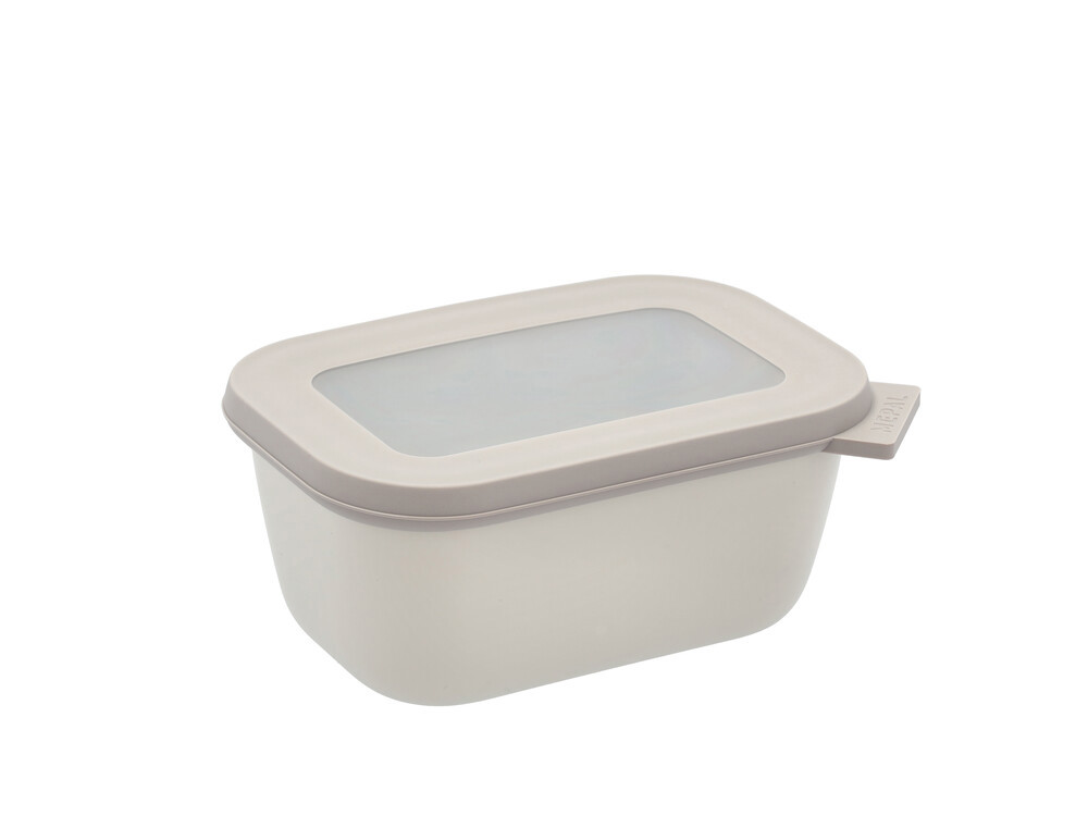 Mepal Cirqula Rektangulær skål m/låg 750 ml Nordic white. Mepal Cirqula er praktiske opbevarings- og serveringsskåle med tætsluttende låg. Skålene er stabelbare og lavet i stærkt BPA-frit plast, og tåler både frost og mikroovn (opvarmning i mikroovn uden låg).