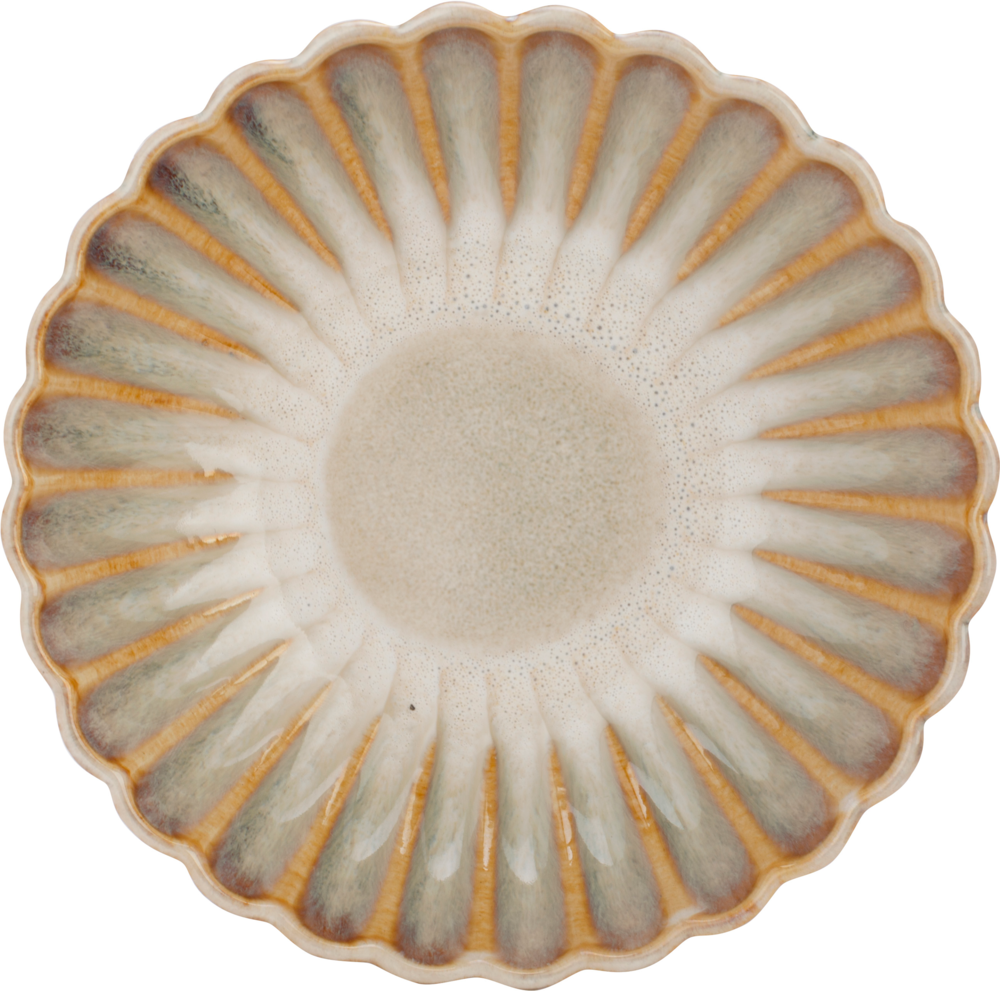 Astera stentøjsserie med denne Pearl skål leder tankerne hen på den smukke Krysantemum blomst - kronbladene er synlige og taktile - breder sig ud og danner bløde riller. Glasurens reaktioner i brændingen giver det super elegante krysantemum-motiv nogle virkelig flotte farvevariationer, der gør hver del hel unik.