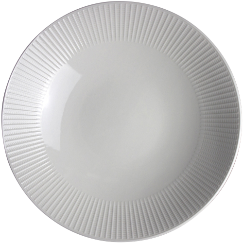 Steelite Willow Skål 28 cm. Willow er en smuk stelserie, med et elegant og stilrent udtryk. De karakteristiske rifler giver stellet moderne kant og et unik look. Willow har et stort udvalg af smukke produkter i enkelt design.Steelite er anerkendt verden over for deres stærke porcelæn i høj kvalitet hvilket betyder at de tilbyder livslang kantskårsgaranti, på alt deres Steelite porcelæn.