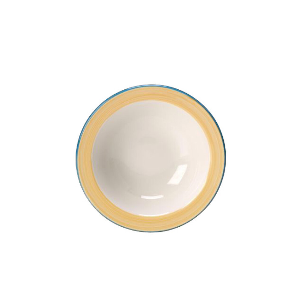 Steelite Rio Gul Skål 16,3 cm. Rio er en serie af klassisk, hvidt porcelæn med en ramme af farvede penselstrøg. Stellet er tidløst med sine klassiske facon og enkelte udtryk. Steelite er anerkendt verden over for deres stærke porcelæn i høj kvalitet hvilket betyder at de tilbyder livslang kantskårsgaranti, på alt deres Steelite porcelæn.
