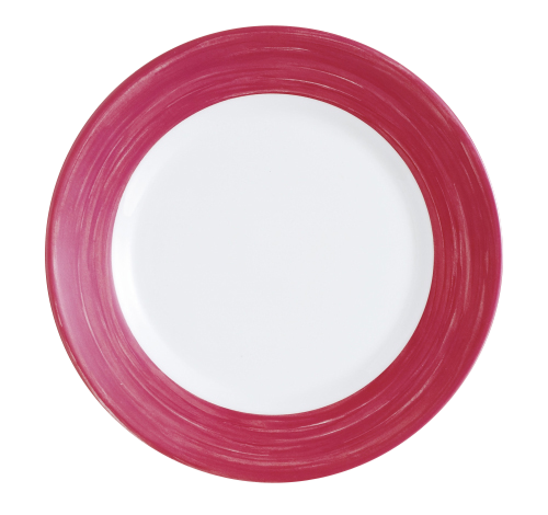 Arcoroc Brush Rød Tallerken 23,5 cm. En enkelt stelserie i hvidt opalglas, med en flot farvet kant som ligner penselstrøg. Serien er lavet i Arc´s specielle glas type Opal. Opalglas er op til 3 gange mere stødresistent end almindeligt porcelæn og tåler temperaturændring på 130°C.