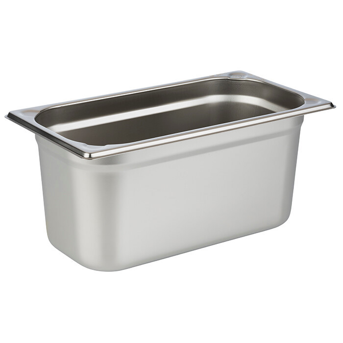 Kantine 1/3 GN 15 cm dyb. Kantinerne er lavet af rustfrit stål, med en halvblank overflade og er velegnet til professionel brug. Låg kan tilkøbes (23343901) også med silikonepakning (23343801).