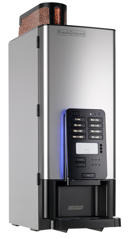 Produkter: Kaffe-friskbryg, Cappuccino, Chokolade, Espressochoc, Café au lait, Moccachino, Mælk, Varmt vand.