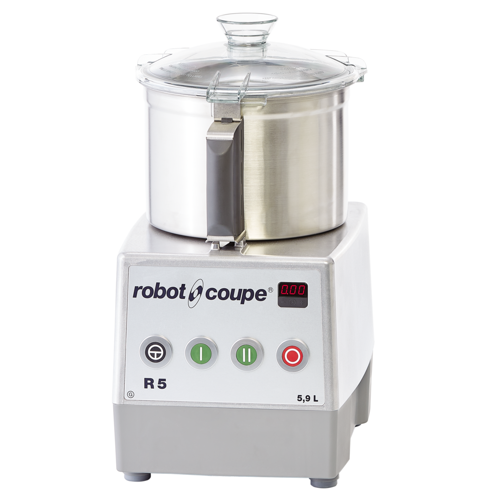 Robot Coupé hurtighakker er specielt designet til at blende alle typer fødevarer fint og sikre en ensartet og glat konsistens hver gang. To hastigheder: 1.500 og 3.000 omdr./minut og pulsfunktion. Hurtig og nem rengøring, alle aftagelige dele kan maskinvaskes. Stor rustfri beholder på 5,9 liter. Dobbeltkniv, fin takket. Lydsvag induktionsmotor på 1.500 W. Kapacitet: 0,5-3,2 kg pr. cyklus. R5 - 2V er velegnet til køkkener med en mellemstor produktion.
