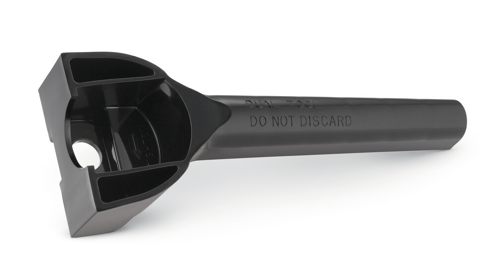 Tang til sikker fjernelse af kniv samt bundmøtrik der holder kniven i bunden af blenderkanden.