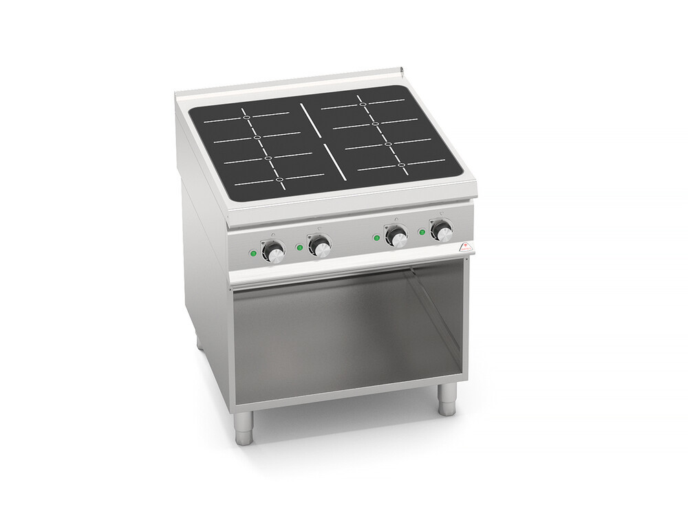 Denne fladedækkende model kombinerer hastigheden af induktorerne med muligheden for at bruge forskellige størrelser pander, selv små diametre, og også mere end én pande kan sættes på den samme kogezone.